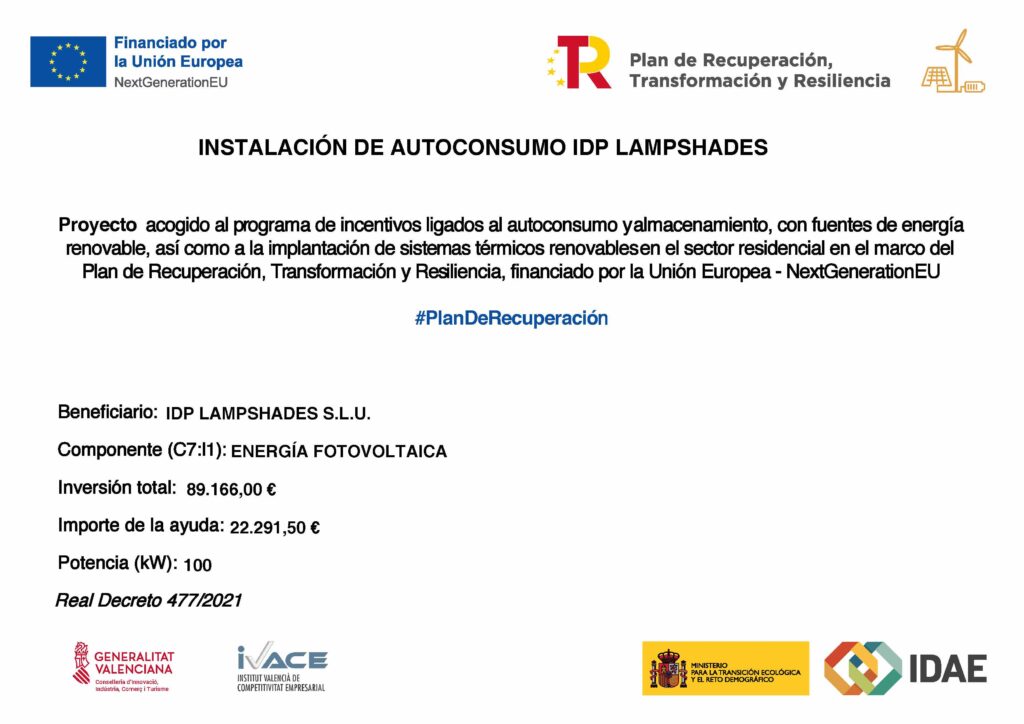 Self-consumption installation Idp Lampshades