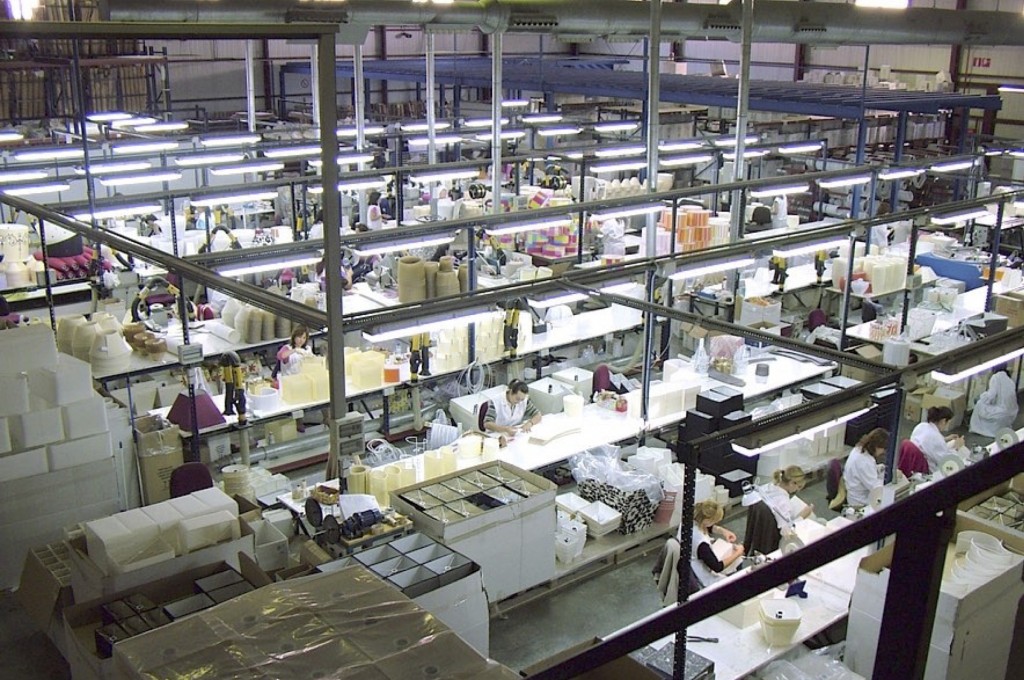 Over time, those complex and handcrafted shades gave way to modern designs of conical shapes, oval, cylindrical, etc., which began to demand a mechanized manufacturing. A requirement that made IDP Lampshades a manufacturing company with machinery capable of undertaking the production of its shades in an integral way. And that meant the need to increase both his space and his staff, which required the transfer of the company to an industrial area of extra radio in Valencia. Thus, in 1994, IDP Lampshades was installed in the El Oliveral industrial park in Ribarroja del Turia, in an 8,000 m2 industrial warehouse, with a human team of 80 people, and sufficient machinery and equipment to manufacture the shades completely.