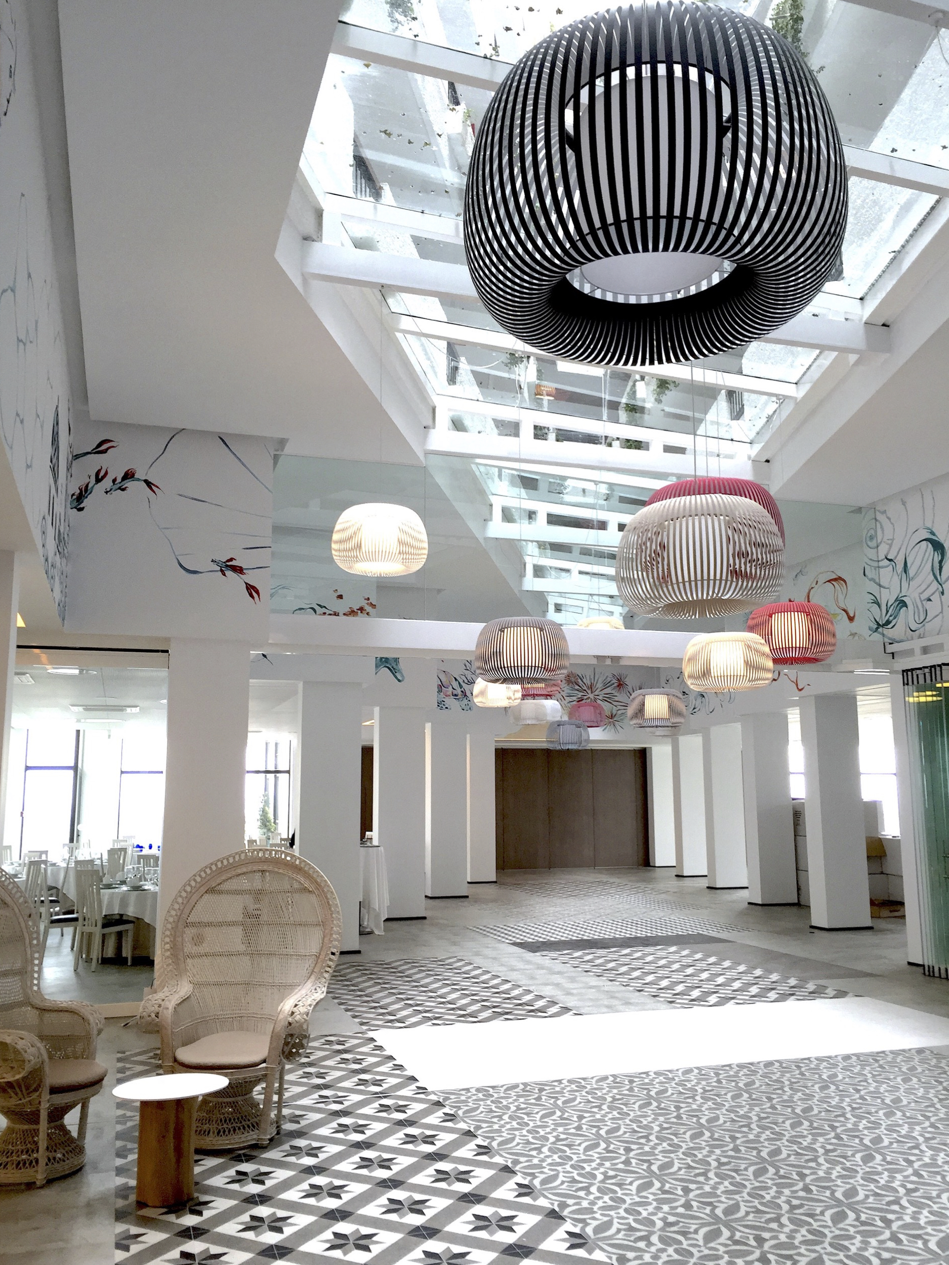 of our luminaires reinforce the elegance and joy of its colorful lobby.